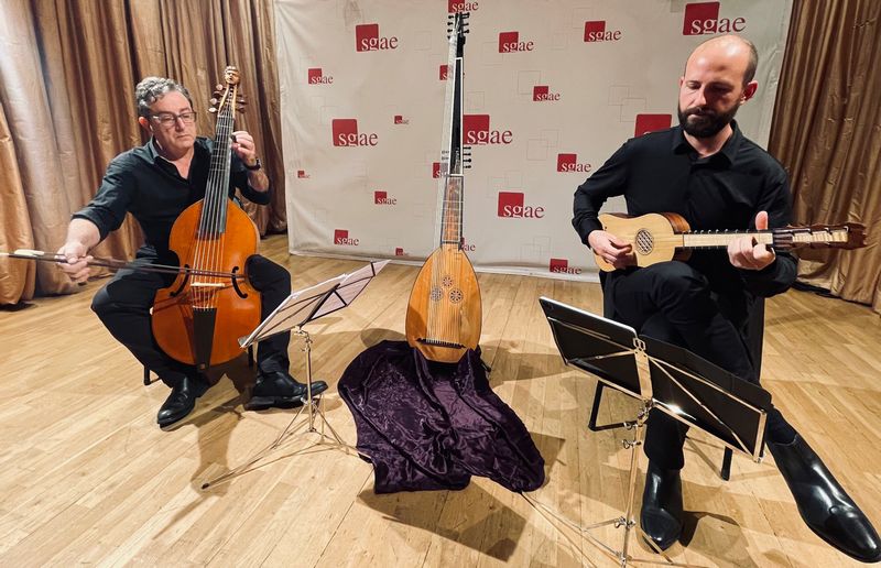 Foto: Un momento del concierto a cargo de Carles Magraner y Robert Cases, en la presentación del disco Mediterrània en la SGAE de Madrid.