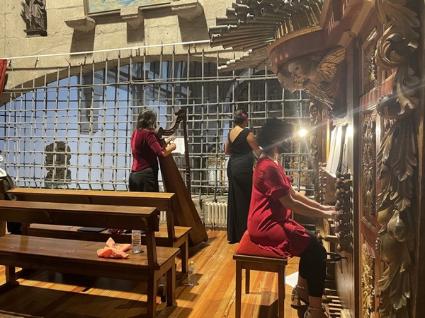 Músicas de entroncamiento entre la Metrópoli y el Nuevo Mundo, para un concierto representativo y fluido, en interpretación de voces con acompañamiento instrumental de época con la dirección del vihuelista Andrés Díaz, y la participación del organista Marco Aurélio Brescia. Capitulo referencial fue Domenico Zipoli, maestro de la escuela de A. Scarlatti y B.Pasquini, trasladado al Paraguay y cuyo legado en la Reducciones Jesuíticas, será rescatado a finales del XX por musicólogos chilenos y argentinos. Piezas suyas tomadas de manuscritos de Sta Ana de Chiquitos, en Bolivia. Del Cancionero de Elvas, tres anónimos A la villa voy, Que he o que vejo-Nao tragais y Nâo podem meus olhos vervos, sobre ritmos característicos de la Península, o folias como Señora de hermosura, de Juan del Encina, tonada que dio el salto oceánico como fue el caso de Dos estrellas le siguen de Marti i Coll.
