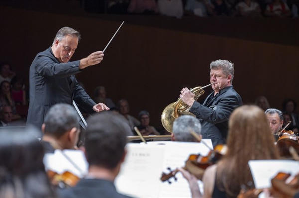 Posteriormente Radek Baborák uno de los mejores trompas del panorama internacional, antiguo solista de la Orquesta Filarmónica de Berlín, afrontó uno de los pilares del repertorio para trompa, el Concierto nº 3 de Mozart, junto a la infrecuente Pieza de concierto op. 94 de Saint-Saëns. Baborák asombró por la brillantez y pureza de su sonido, en cualquier tesitura, su amplia gama dinámica, que le permite pasar de pianísimos inmateriales a los más brillantes fortísimos sin forzar ni perder redondez en el sonido. Su facilidad articulatoria y amplia capacidad pulmonar quedó de manifiesto a lo largo de las dos piezas, especialmente en la amplia cadencia del primer movimiento de Mozart, que entiendo obra del propio Radek, y que le permitió incluir toda una amplia variedad de recursos técnicos, que si bien es cierto excedían los límites del estilo mozartiano, añadieron un enriquecedor contraste con el resto de la pieza.