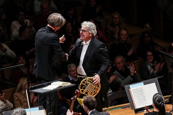Albrecht lo llevó “a la mano”, facilitando así mayor suave legato, ligereza y expresión del lógicamente reducido conjunto, con sólo 26 cuerdas. Radovan Vlatkovic, con trompa actual, estuvo estupendo, con sonido redondo y broncíneo de absoluta limpieza y afinación, que solventó las dificultades linguales, de manejo de la mano izquierda y de respiración del Allegro, tan noble; del lírico y meditativo del Andante en Sib, con esa bella melodía para la trompa, nítidas las octavas; y ese Più allegro del final donde las trompas imitan el sonido de las de caza y donde el solista remata su “cacería” particular con complicados sonidos graciosos que lo concluyen.