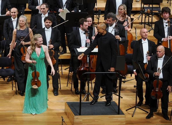 Tras el exitoso arranque de Temporada, la Orquesta Sinfónica de Castilla y León (OSCyL) abordó su segundo programa en su sede vallisoletana, presentando a Kevin John Edusei (Bielefeld, 1976) como Director invitado; ganador del Concurso “Dmitris Mitropoulos” 2008; de 2013 a 2022 Titular de la Sinfónica de Múnich y, en esta 25-26, Residente en la Royal Philharmonic Orchestra. Estuvo acompañado como solista invitada por la violinista Simone Lamsma (Leenwarden, PB, 1985), también debutante con la Orquesta; concertista que ha actuado con las mejores orquestas y Directores del circuito, actualmente Residente en la Sinfónica de Oregón y en la Orquesta “Residencia”; en 2019 fue nombrada “Fellow” de la Real Academia de Música de Londres, título que sólo ostentan 300 exalumnos en toda su historia. Juntos abordaron el Concierto para violín y orquesta nº 1 en Sol m., op. 26 (1864-66, revisado hasta 1868) de Max Bruch. Por delante, fue primicia para la OSCyL, Elysium para orquesta (2021) de Samy Moussa (Montreal, 1984), dedicado a la Filarmónica de Viena que se lo sugirió para su estreno en Barcelona, conjunta con el Festival de Lanaudière y la Sinfónica de Vancouver, sumándose así las tres novedades de un Programa, cerrado con Sinfonía nº 5 en Re m., op. 47 (1937) de Shostakóvich, por 8ª vez en la historia de la OSCyL.