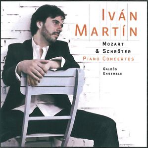 Tras el precioso disco dedicado a Soler (Warner), el pianista Iván Martín, al que recientemente entrevistamos en RITMO (octubre de 2011), aparece de nuevo con una verdadera joya, que nos acerca tres conciertos de Mozart (los K. 107), ninguno de ellos de la gran familia de los veintisiete, pero primos cercanos de los “pasticcio” (tiene a J. C. Bach como referente), más un concierto de Johann Samuel Schröter, contemporáneo de Mozart e invitado a una fiesta en la que sin ser el anfitrión sí que es el que deja un gran recuerdo, pues su Concierto op.3/ 3, espléndidamente dirigido por Iván Martín, que se pluriemplea de lo lindo componiendo además dos cadencias en Mozart, ambiciona un ropaje mayor que el del Galdós Ensemble (siete instrumentistas), casi preferible con un “Benito Pérez Galdós Ensemble”, ya que sus texturas piden un mayor espesor instrumental. Aun así, es una delicia escuchar estas rarezas con tanta perfección, con una característica no sé si involuntaria, como es el estilo dieciochesco de un Boccherini (o del Padre Soler) en Mozart (Concierto núm. 1 especialmente), con un piano de una elegancia muy natural (Núm. 2) y cierta inocencia intencionada (las conclusiones de las frases), muy apropiada para unas obras con acné adolescente en proceso de perfeccionamiento progresivo.