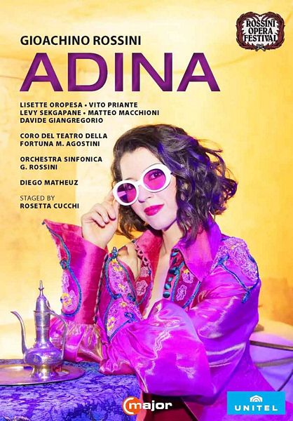 Justo cuando se van a cumplir los doscientos años de su estreno en el Teatro San Carlos de Lisboa, CMajor recupera en formato audiovisual la producción de la rara farsa rossiniana Adina que cosechó no pocos elogios en la edición 2018 del Festival Rossini de Pésaro. Y aunque no era la primera vez que se proponía en la ciudad natal del compositor (antes la habían encarnado Alexandrina Pendatchanska y Joyce DiDonato), sí que era nueva la puesta en escena de Rosetta Cucchi, muy divertida, dinámica y explotando la trama desde lo hilarante. Visualmente llamativa, se articula en una gran tarta nupcial de tres pisos que da todo el juego que precisa su trama, de amores no correspondidos y con una anagnórisis final bien resuelta.